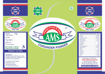 Dry Coriander only (Coriander Powder in this package contains an admixture of not more than 2% of edible oil)